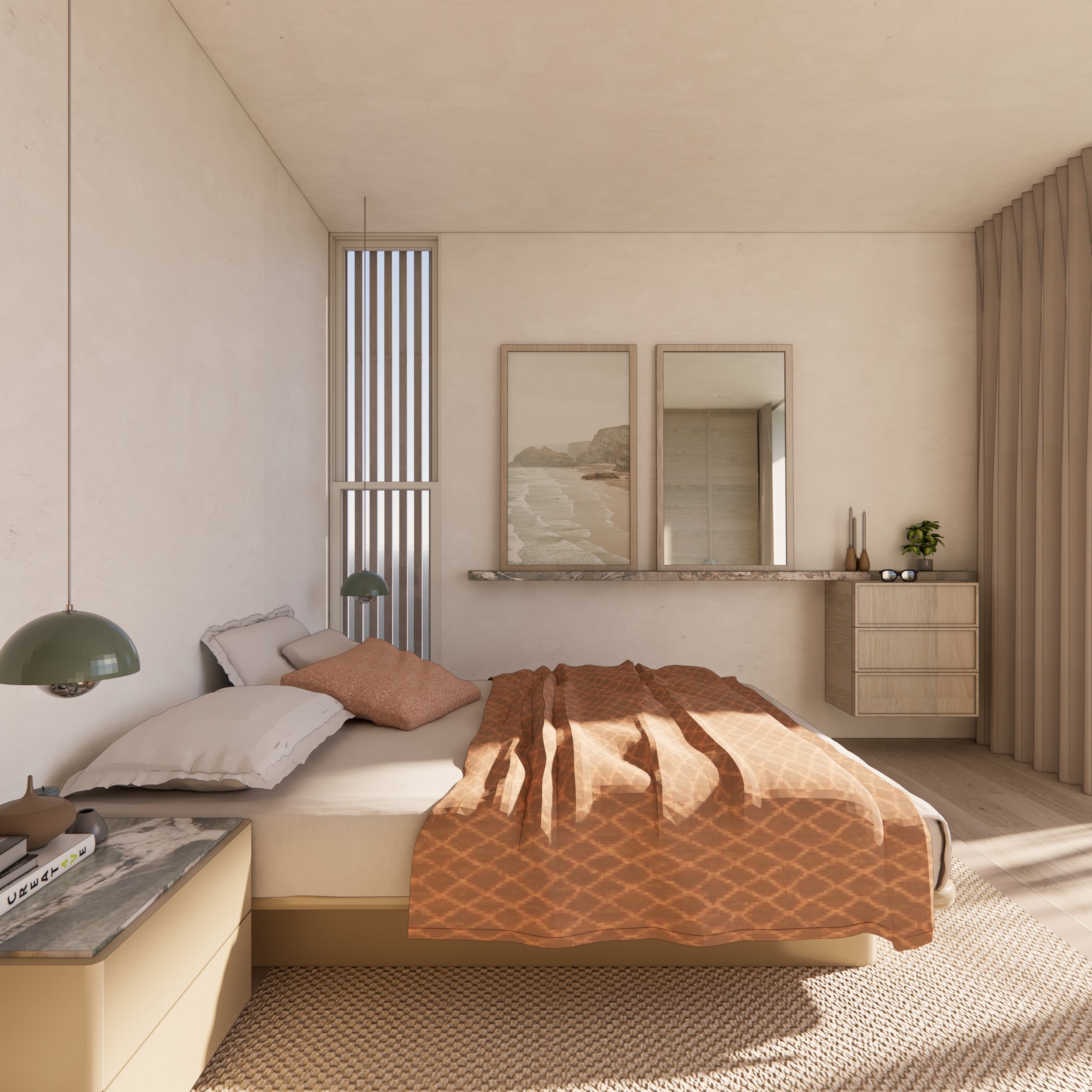 Due to the harsh coastal environment, these residences are thoughtfully designed with local, sustainable materials that are low maintenance for ease of upkeep. Solar technology coupled with battery storage minimise running costs. Local flora drawn from the Kamay National Park will provide a water-tolerant yet beautiful landscape for the houses to sit in.