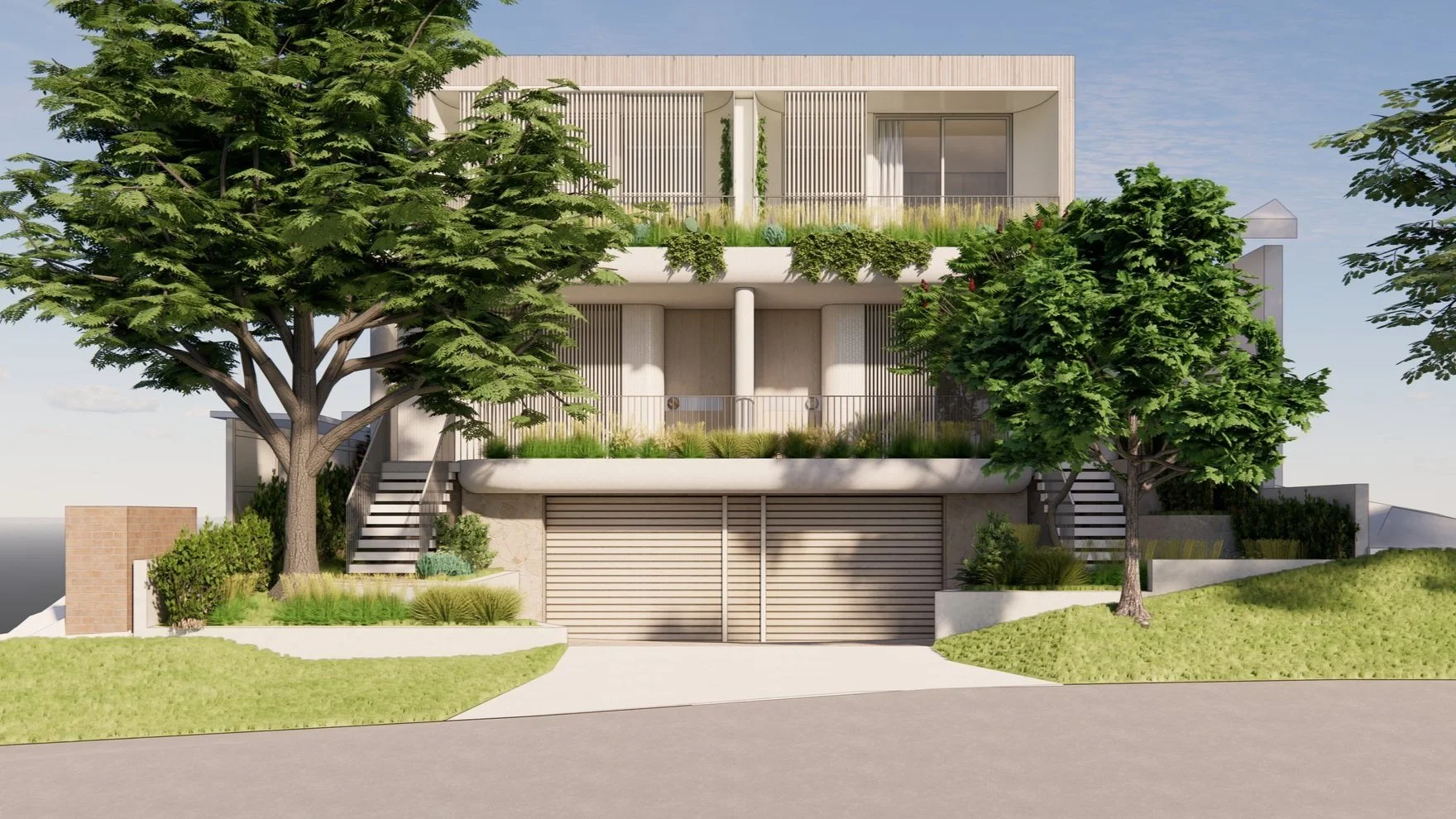 Due to the harsh coastal environment, these residences are thoughtfully designed with local, sustainable materials that are low maintenance for ease of upkeep. Solar technology coupled with battery storage minimise running costs. Local flora drawn from the Kamay National Park will provide a water-tolerant yet beautiful landscape for the houses to sit in.